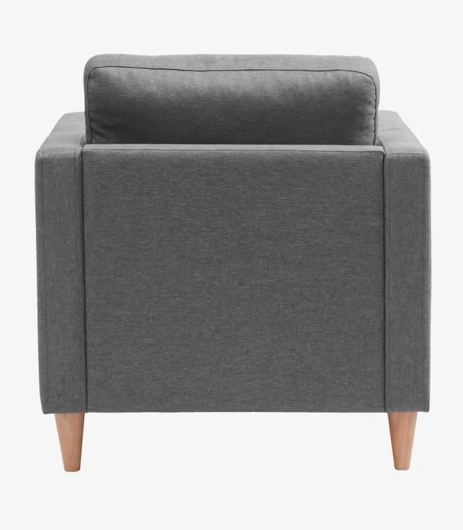 Stof. Sæde- og ryghynder i skum. Ben i massivt træ. B84 x H78 x D75 cm