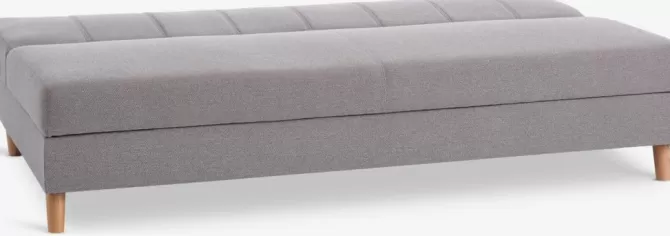 3-personers sofa i stof. Sofaen kan nemt laves om til en seng. Sæde- og ryghynder i skum. Ben i massivt træ. Med opbevaringsplads. Liggemål 114×192 cm. B192 x H85 x D97 cm